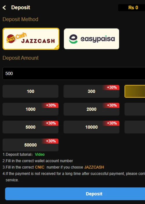 Deposit and Withdrawal in Dua66 Game